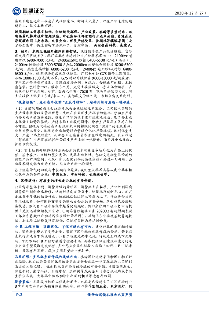 国盛证券:建筑材料行业周报:继续推荐玻纤板块,关注低位的消费建材细分成长龙头.pdf
