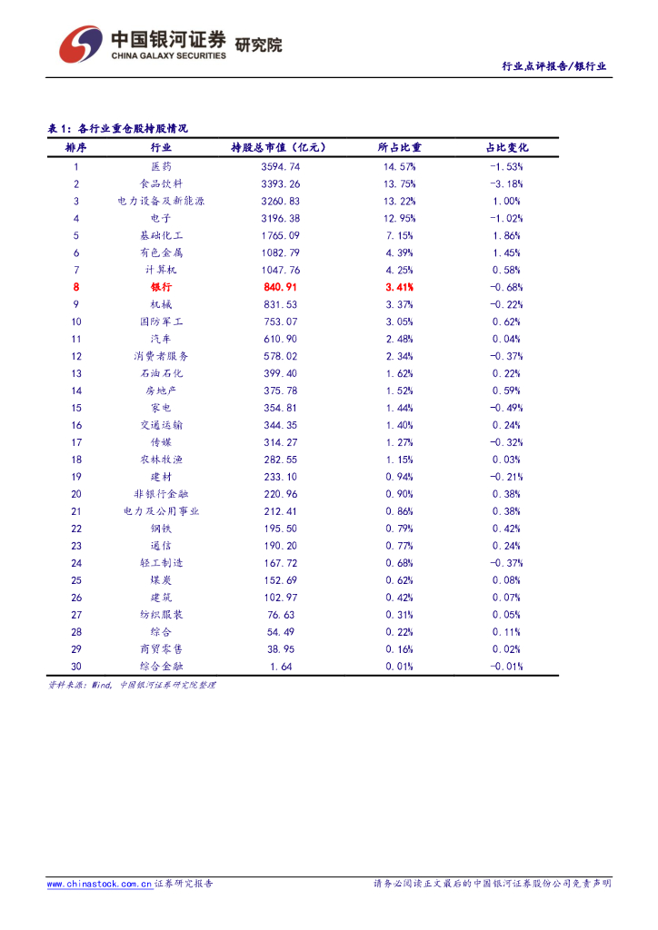 中国银河:银行业:银行公募持仓占比回落,政策边际改善利好基本面平稳和估值修复.pdf