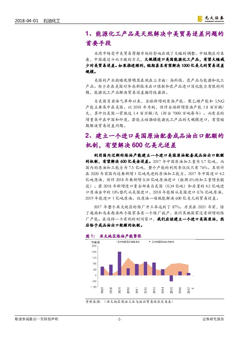 光大证券:石油化工:中美贸易摩擦系列报告之一-进口能源化工产品解决1000亿对美逆差的可能性分析.pdf