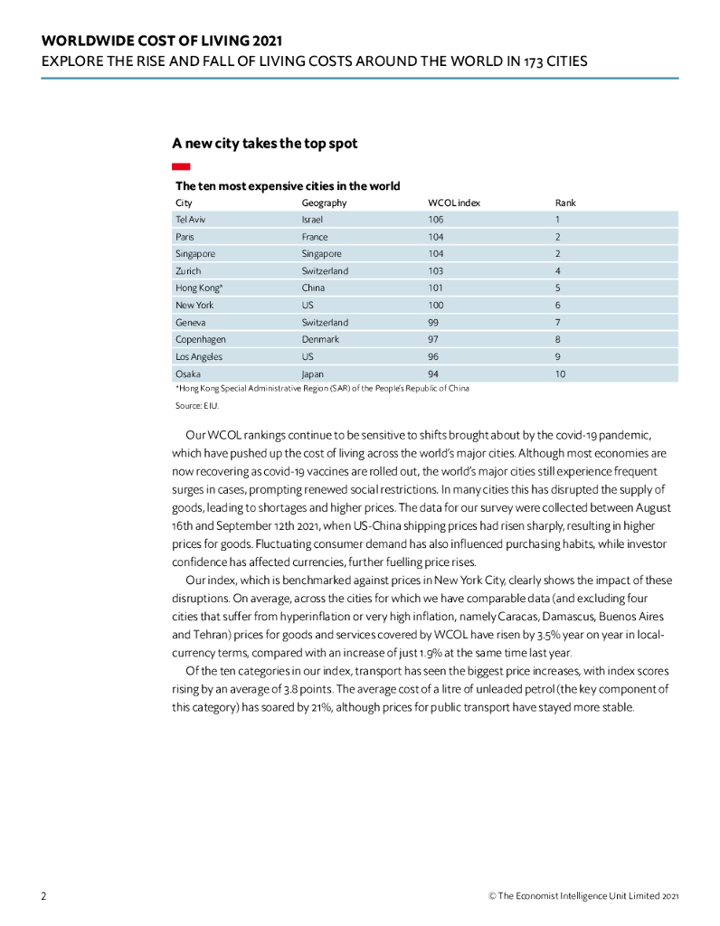 EIU:2021年全球生活成本最高城市排名(英文版).pdf