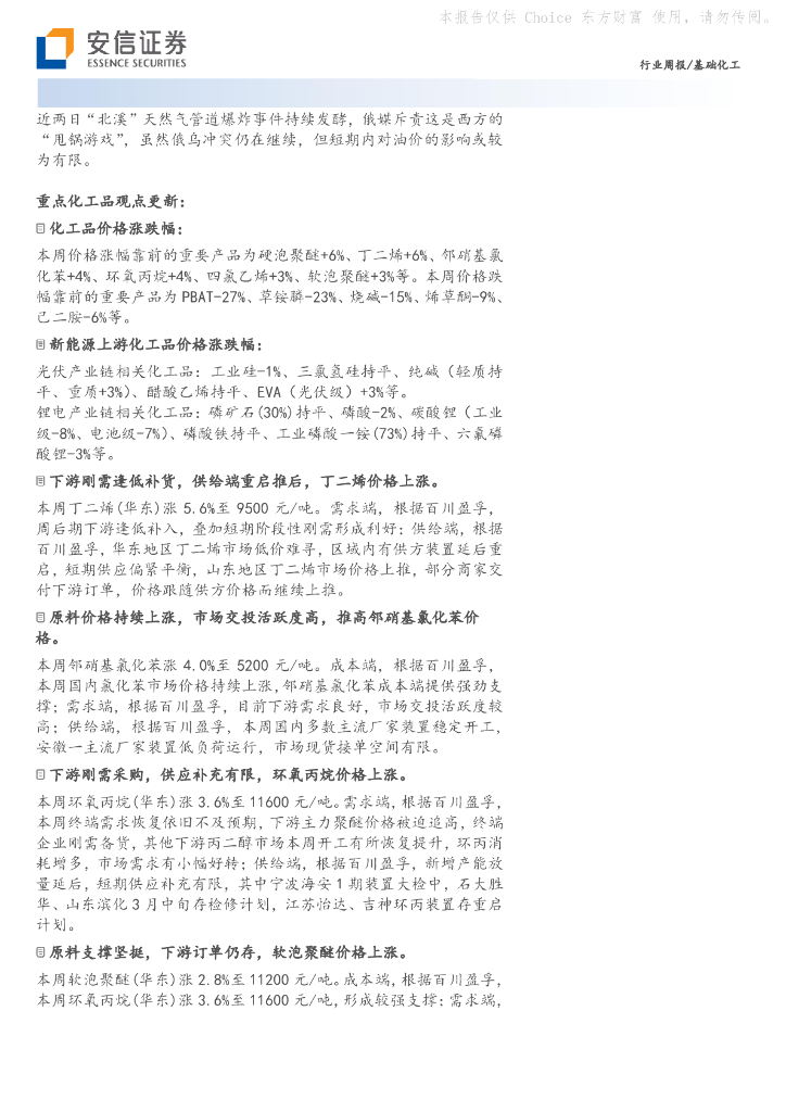 安信证券:基础化工行业周报:油价下跌,丁二烯、邻硝基氯化苯、环氧丙烷、四氯乙烯等产品价格上涨.pdf