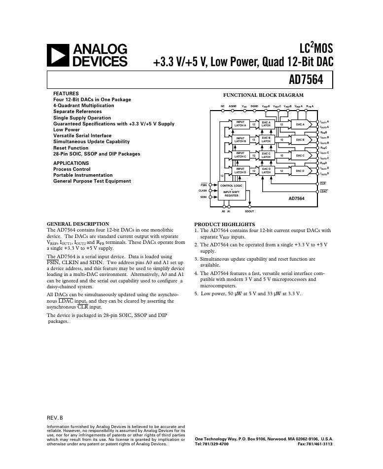 ANALOG DEVICES AD7564 英文产品数据手册.pdf