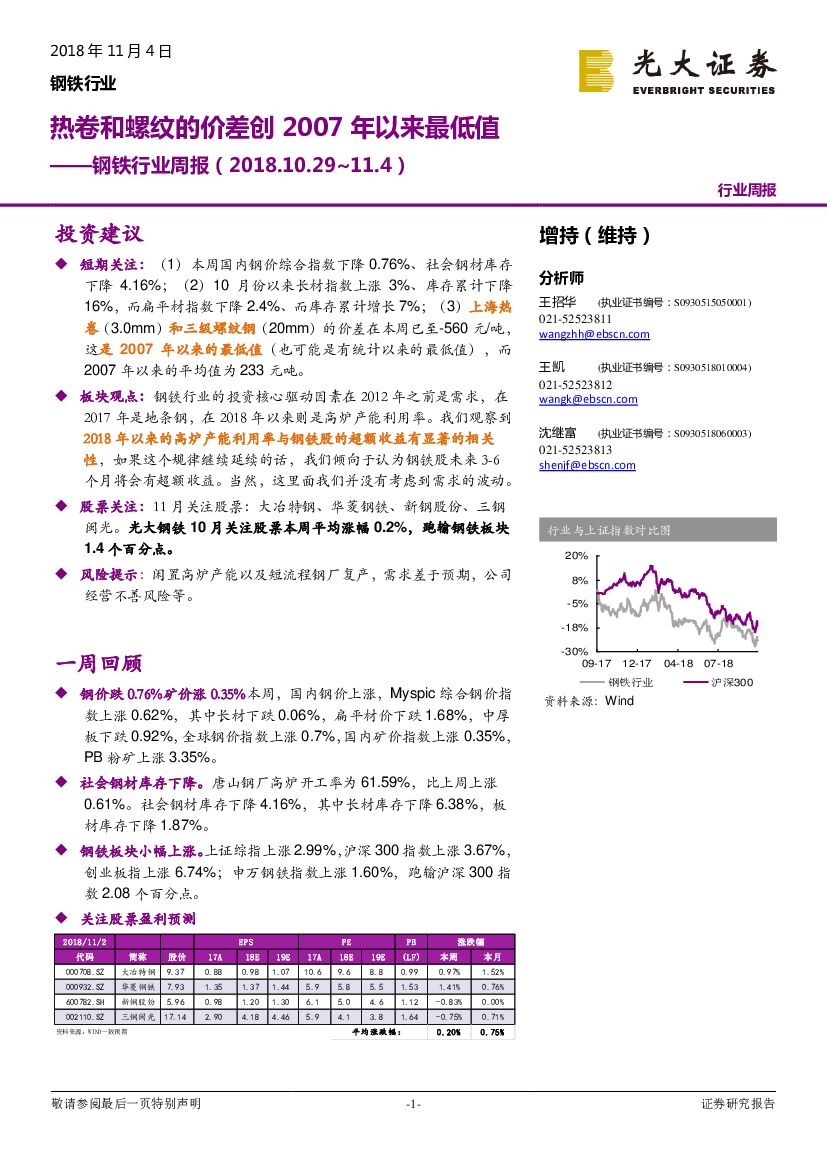 光大证券:钢铁行业周报:热卷和螺纹的价差创2007年以来最低值.pdf
