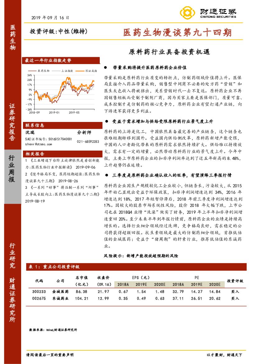 财通证券:医药生物漫谈第九十四期:原料药行业具备投资机遇.pdf