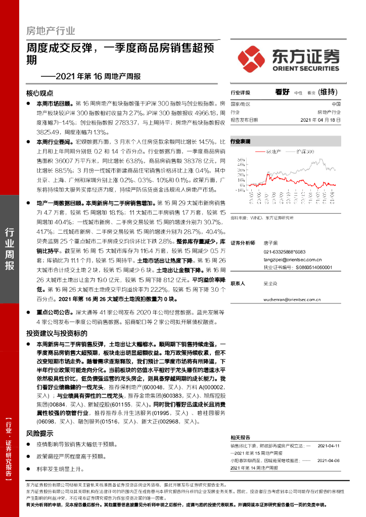 东方证券:2021年第16周地产周报:周度成交反弹,一季度商品房销售超预期.pdf
