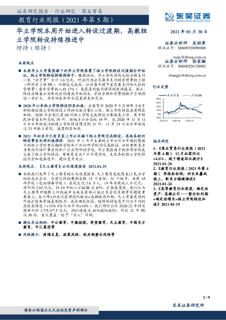 东吴证券:教育行业周报(2021年第5期):华立学院本周开始进入转设过渡期,高教独立学院转设持续推进中.pdf