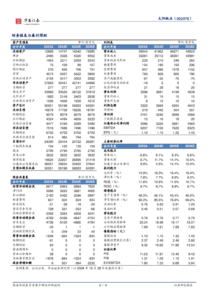 华安证券:太阳纸业(002078)-2024Q3营收稳健增长,资产处置拖累净利润.pdf