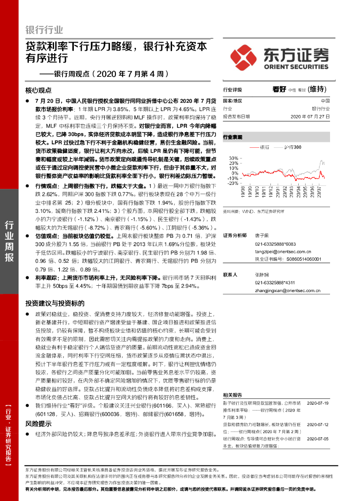 东方证券:银行周观点(2020年7月第4周):贷款利率下行压力略缓,银行补充资本有序进行.pdf
