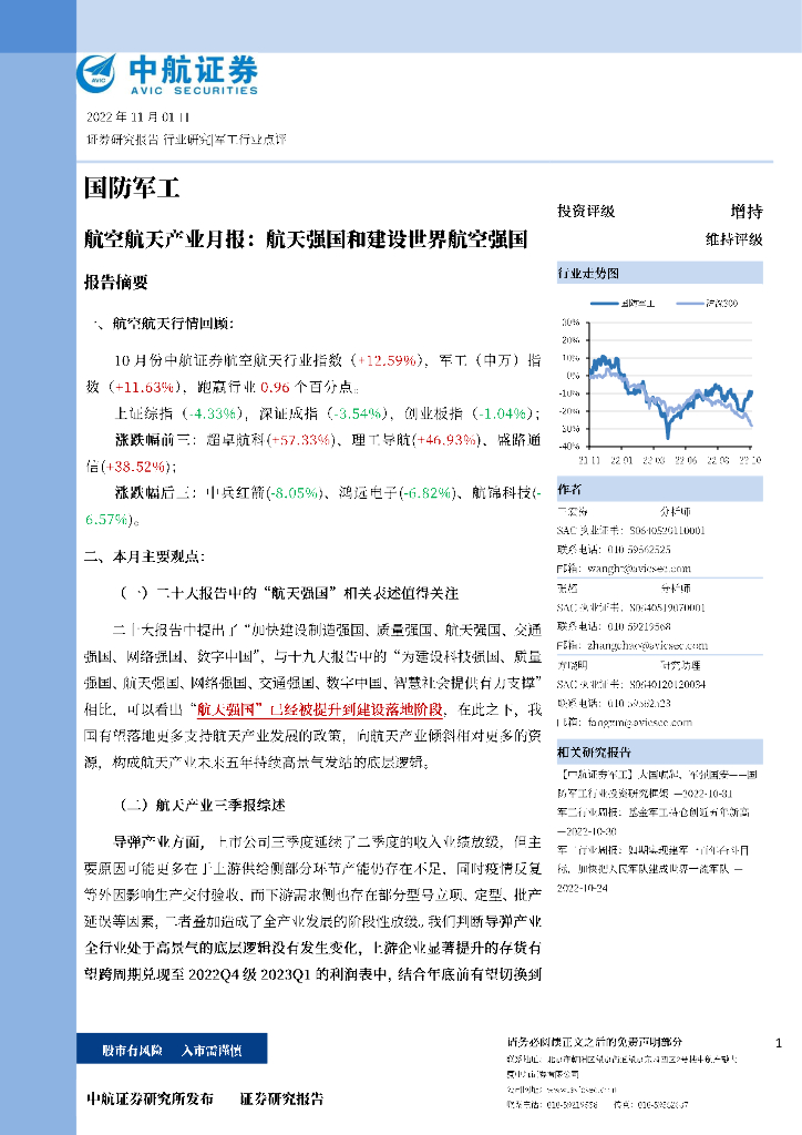 中航证券:国防军工:航空航天产业月报:航天强国和建设世界航空强国.pdf