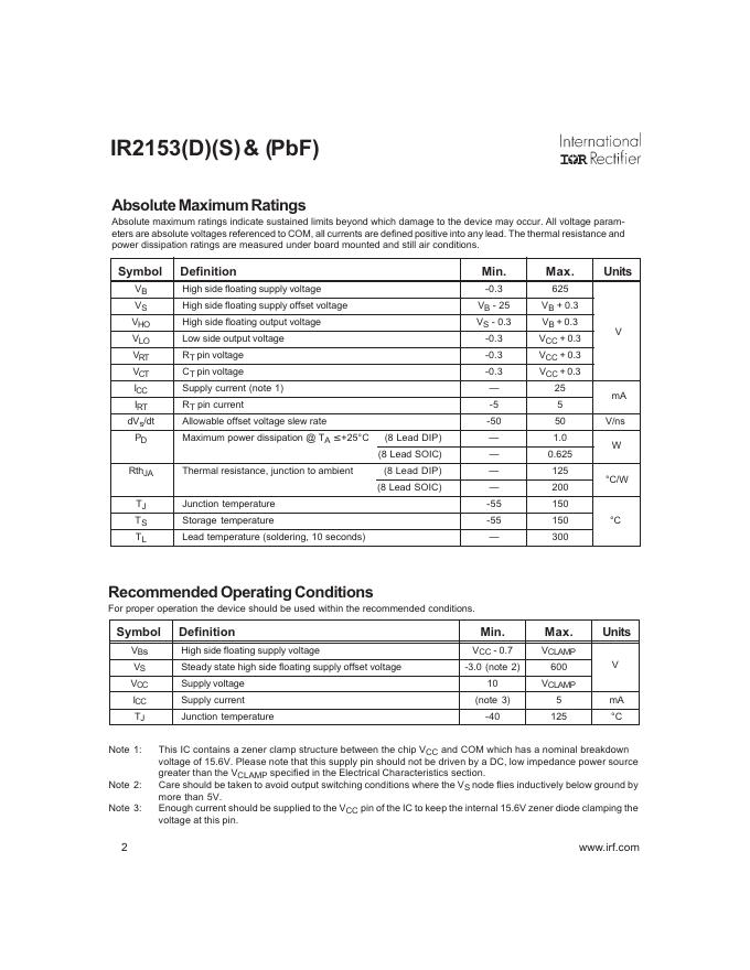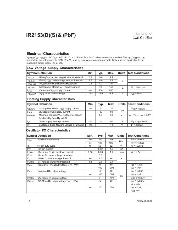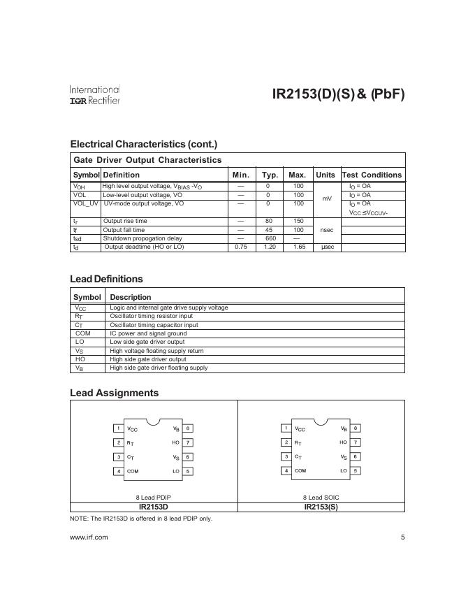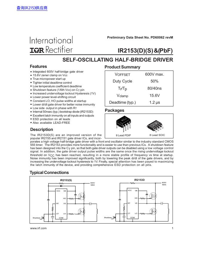 lnternational IOR Rectifier IR2153(D)(S) &(PbF) 数据手册.pdf