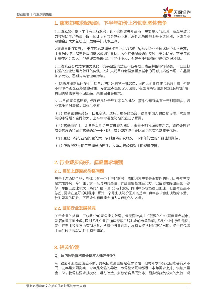 天风证券:饮料制造:奶价下半年有上行趋势,伊利销售超预期.pdf