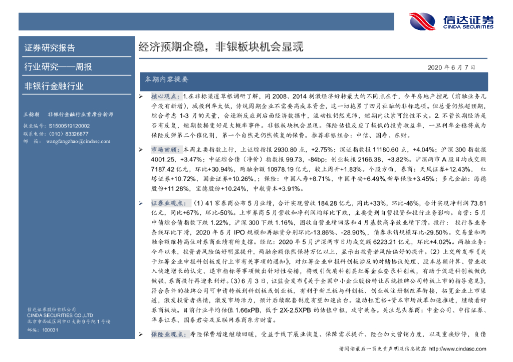 信达证券:非银行金融行业周报:经济预期企稳,非银板块机会显现.pdf