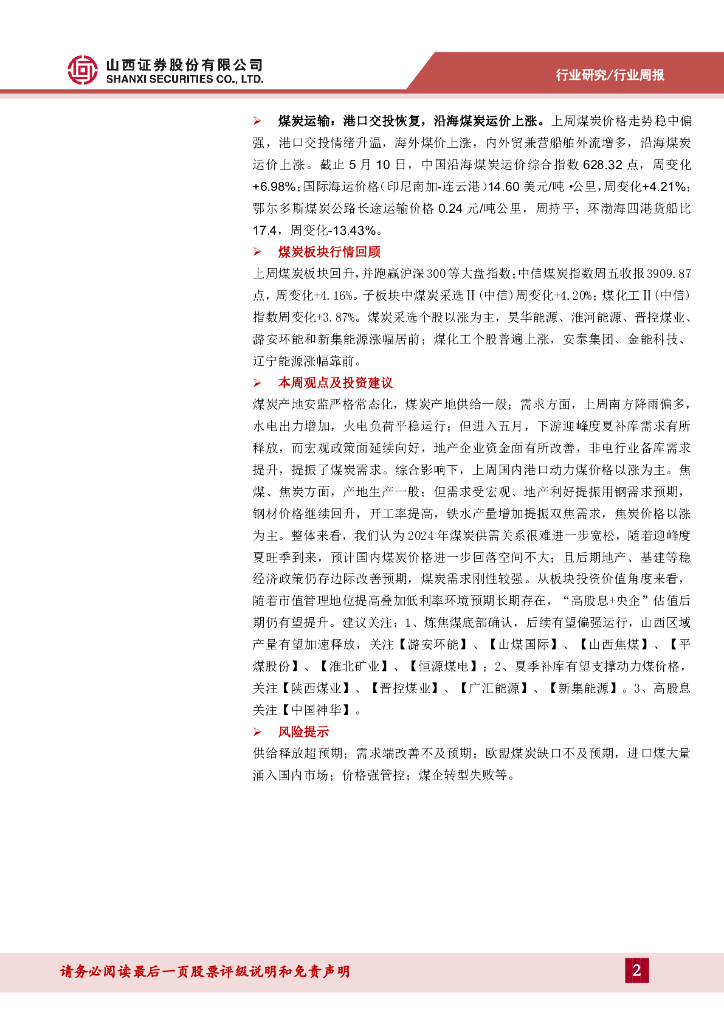 山西证券:煤炭行业周报:迎峰度夏补库需求启动,动力煤价上涨.pdf