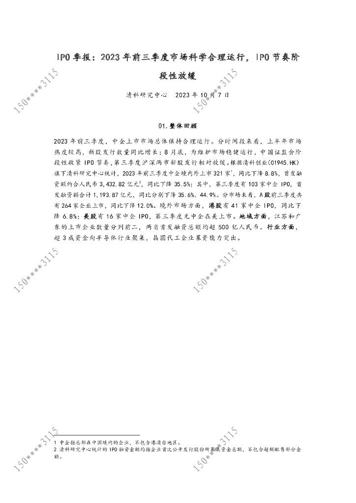 清科研究IPO季报:2023年前三季度市场科学合理运行,IPO节奏阶段性放缓.pdf