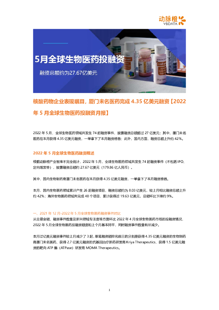 动脉橙:2022年5月全球生物医药投融资月报.pdf