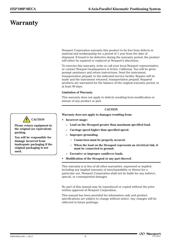 HXP100P-MECA 6-Axis-Parallel Kinematic Positioning System 用户手册.pdf