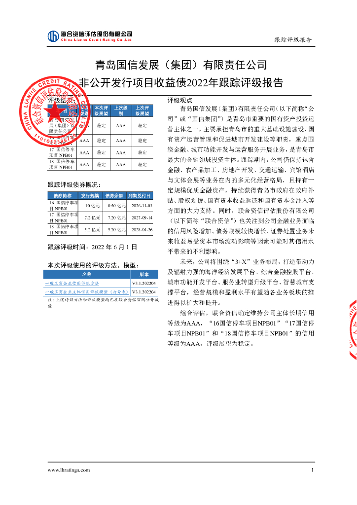 联合资信:青岛国信发展(集团)有限责任公司2022年非公开发行项目收益债跟踪评级报告.pdf