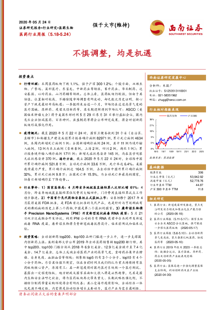 西南证券:医药行业周报:不惧调整,均是机遇.pdf