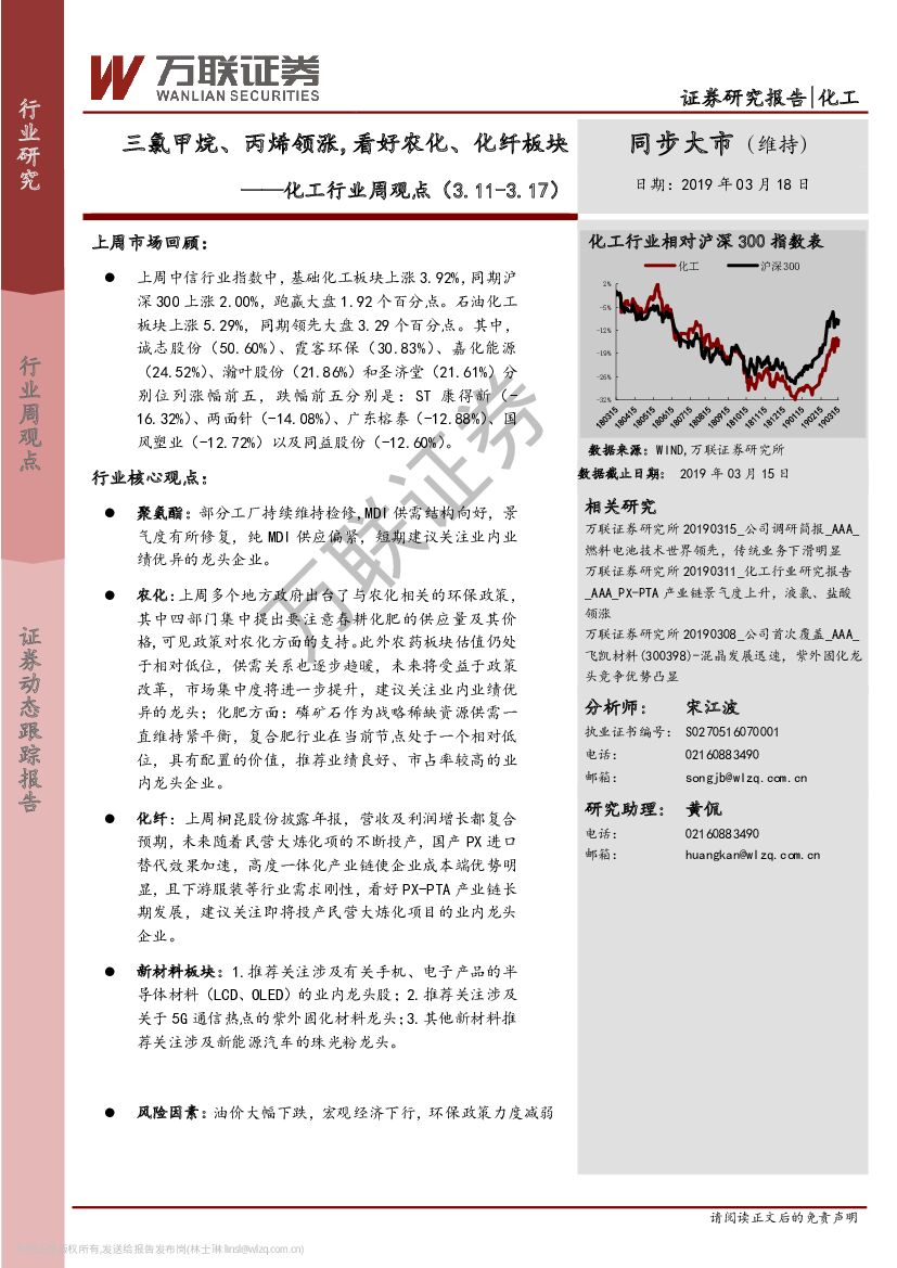 万联证券:化工行业周观点:三氯甲烷、丙烯领涨,看好农化、化纤板块.pdf