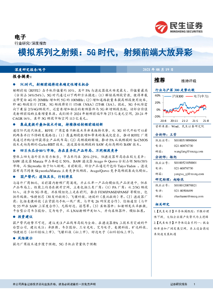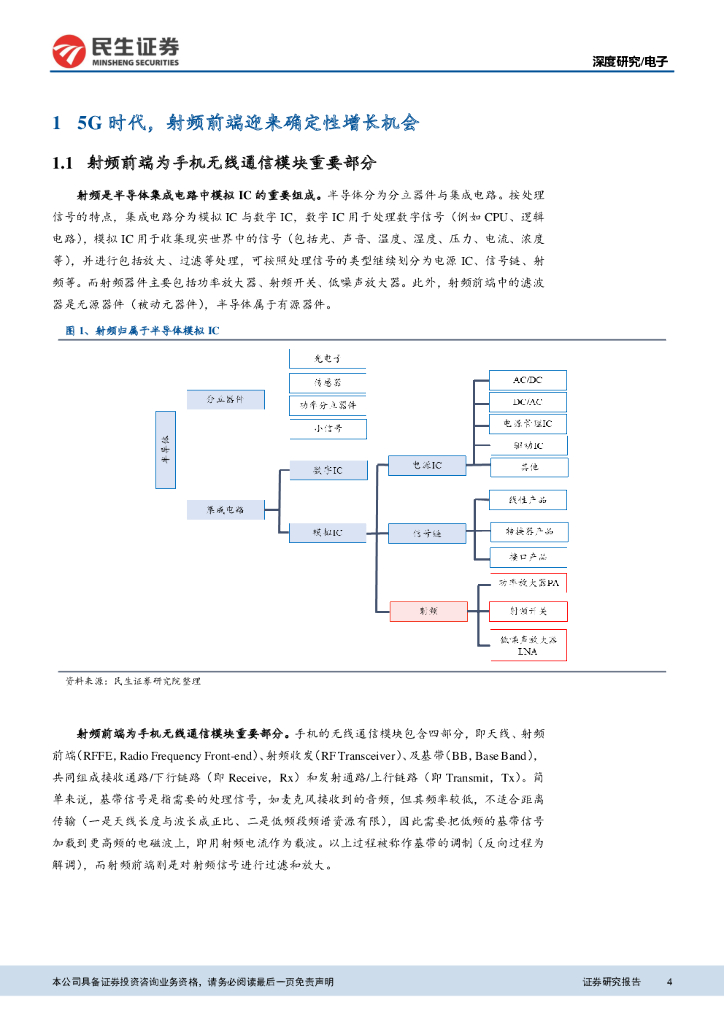 民生证券:电子:模拟系列之射频:5G时代,射频前端大放异彩.pdf
