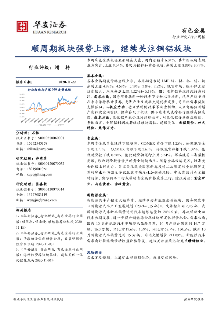 华安证券:有色金属行业周报:顺周期板块强势上涨,继续关注铜铝板块.pdf