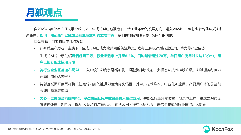 MoonFox月狐数据:“AI+”蓄势,产业赋能初现曙光-中国生成式AI行业市场热点月度分析(2024年2月).pdf