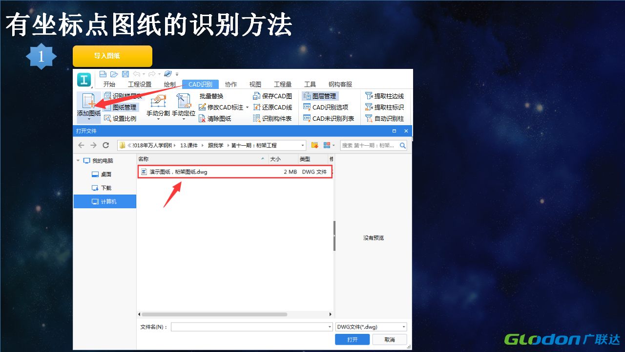 钢筋算量软件有坐标点图纸的识别方法.ppt
