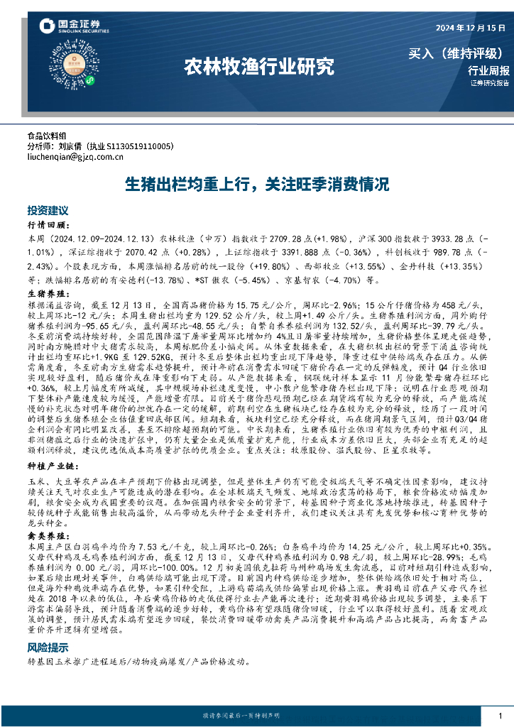 国金证券:农林牧渔行业研究:生猪出栏均重上行,关注旺季消费情况.pdf