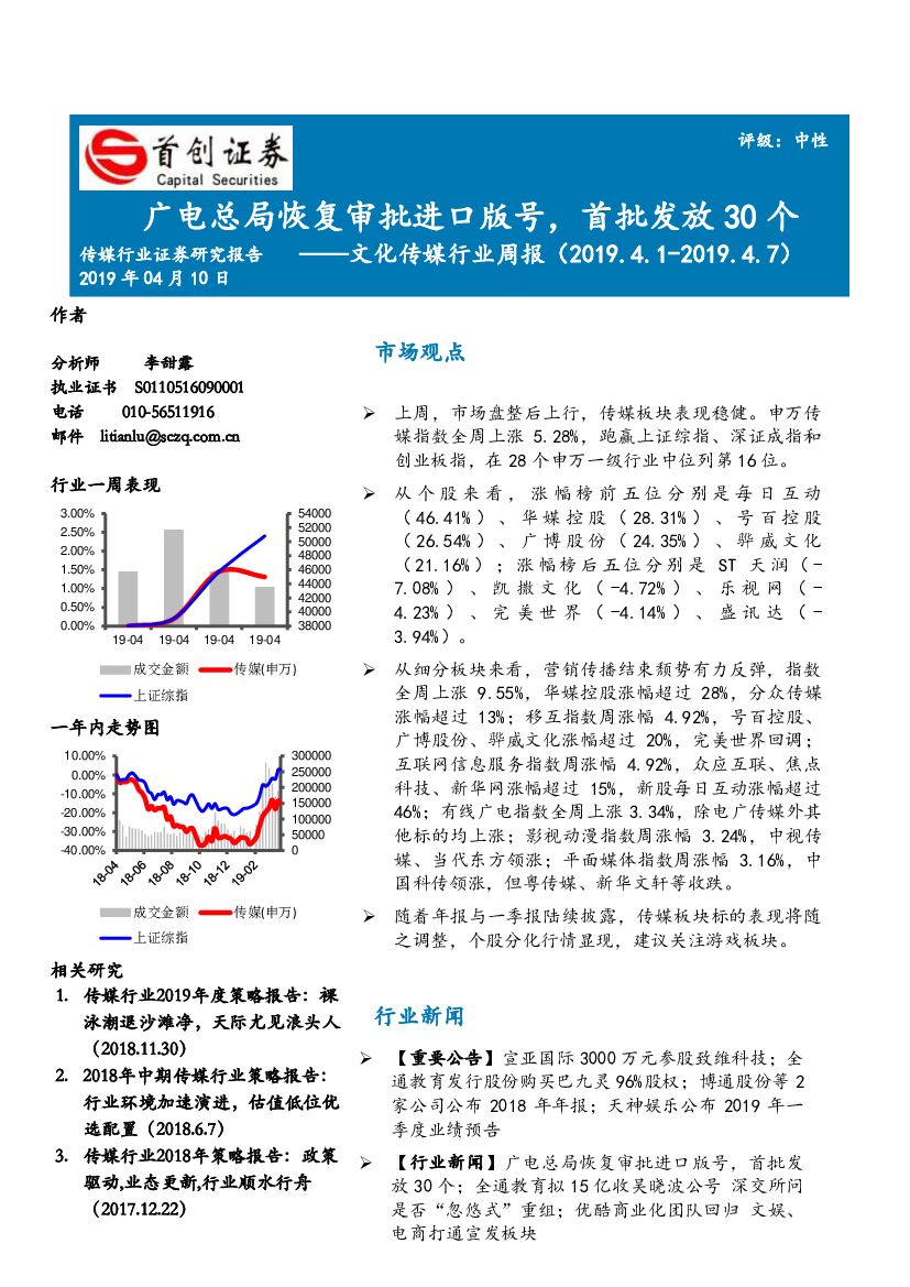 首创证券:文化传媒行业周报:广电总局恢复审批进口版号,首批发放30个.pdf