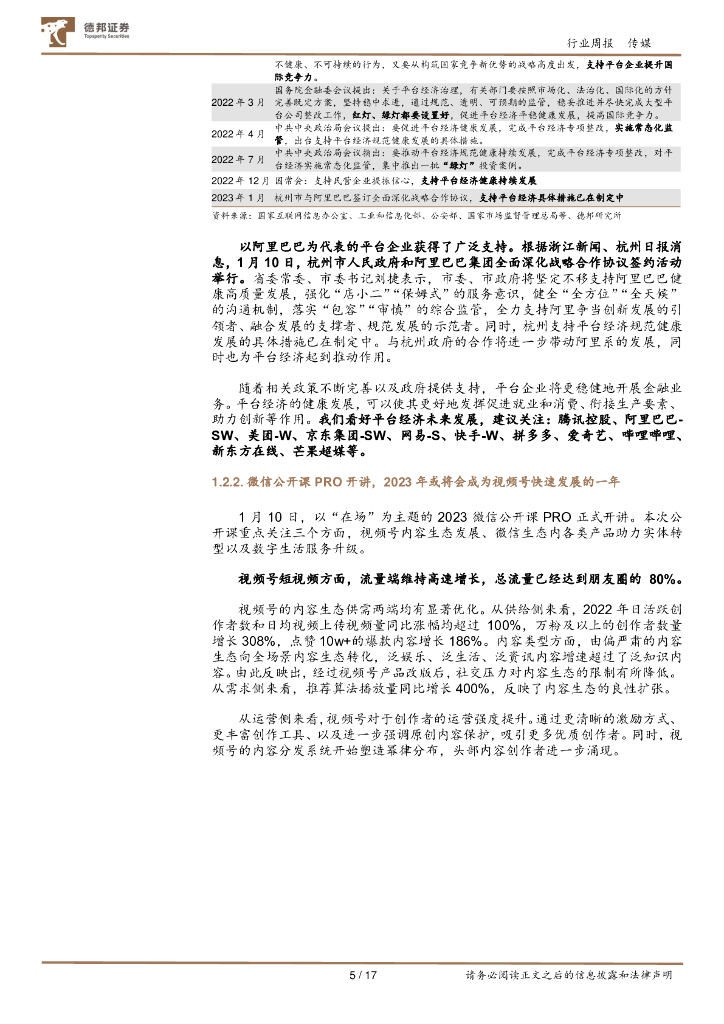 德邦证券:传媒互联网行业周报:平台企业金融业务整改已基本完成,2023年视频号或成腾讯重要增量.pdf