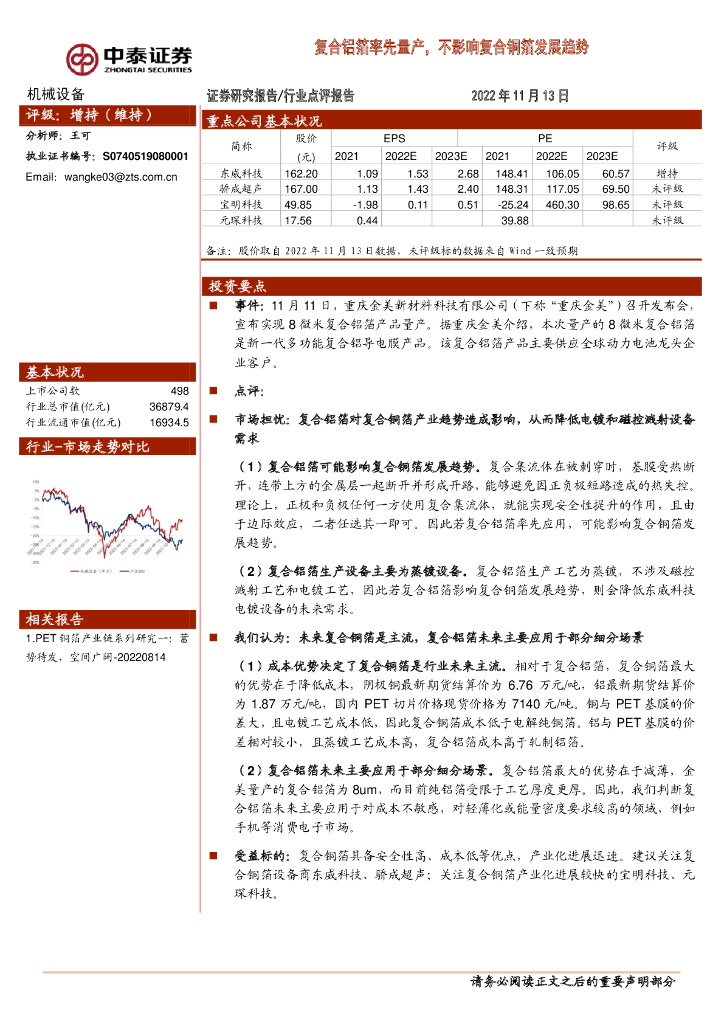 中泰证券:机械设备行业点评报告:复合铝箔率先量产,不影响复合铜箔发展趋势.pdf
