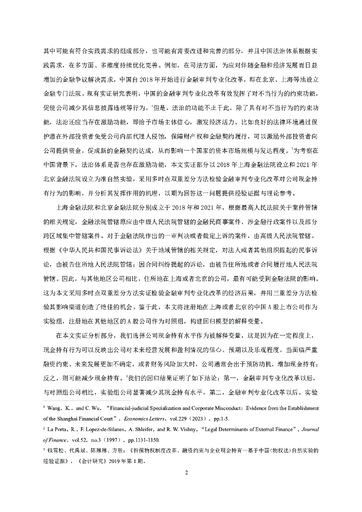 国际货币网:【IMI Working Paper No.2505】法治体系、融资约束与公司现金持有行为——基于金融法院的准自然实验.pdf