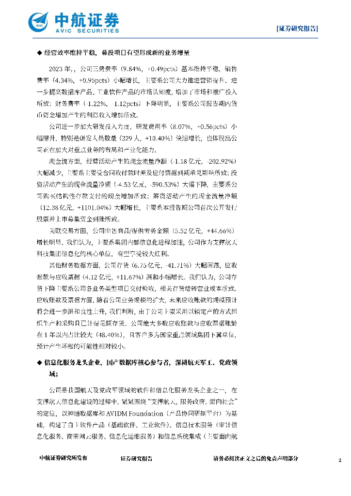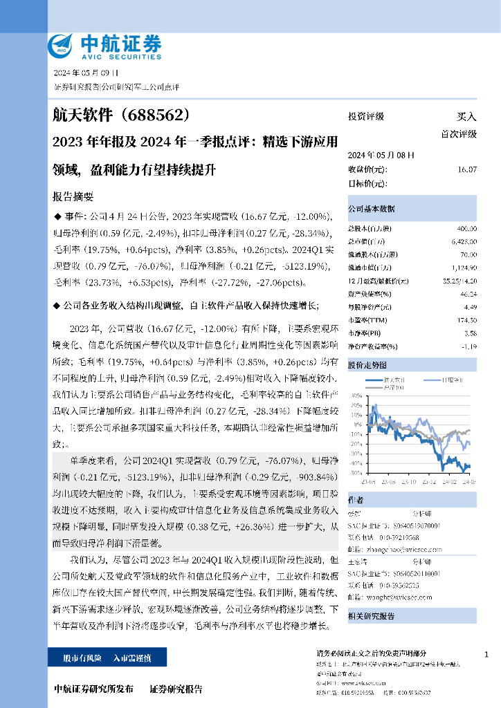 中航证券:航天软件(688562)-2023年年报及2024年一季报点评:精选下游应用领域,盈利能力有望持续提升.pdf