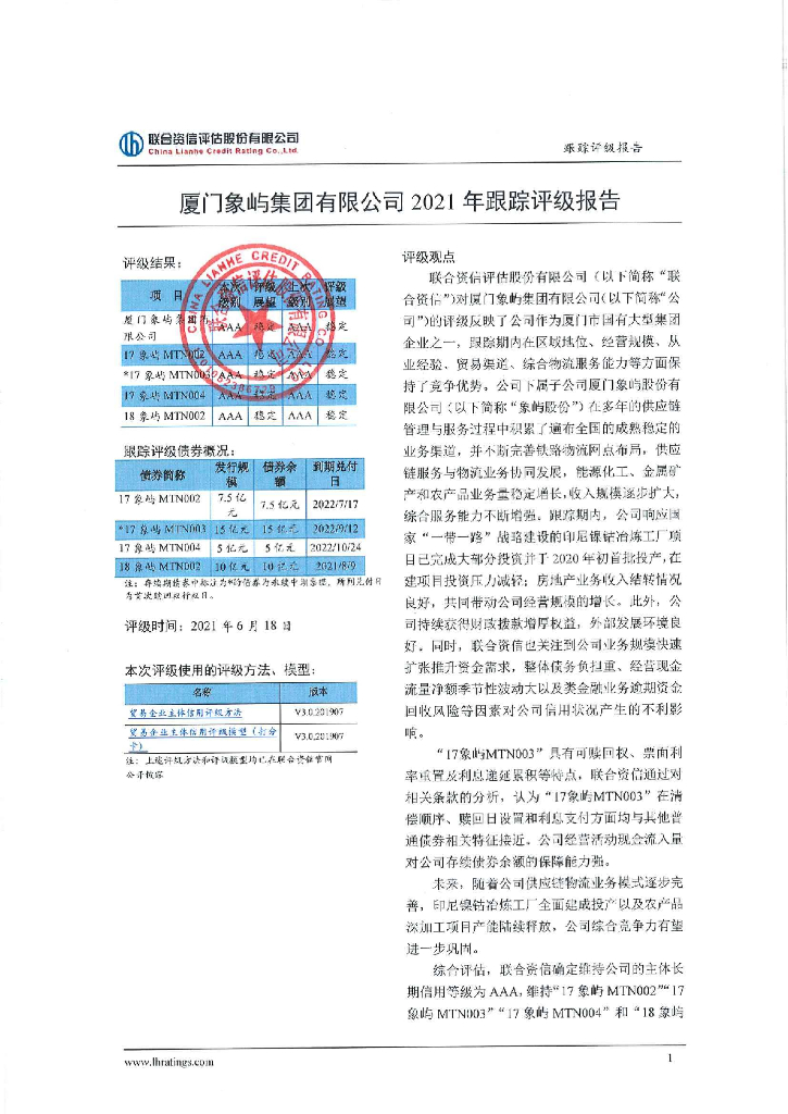 联合资信:厦门象屿集团有限公司2021年度跟踪评级报告.pdf