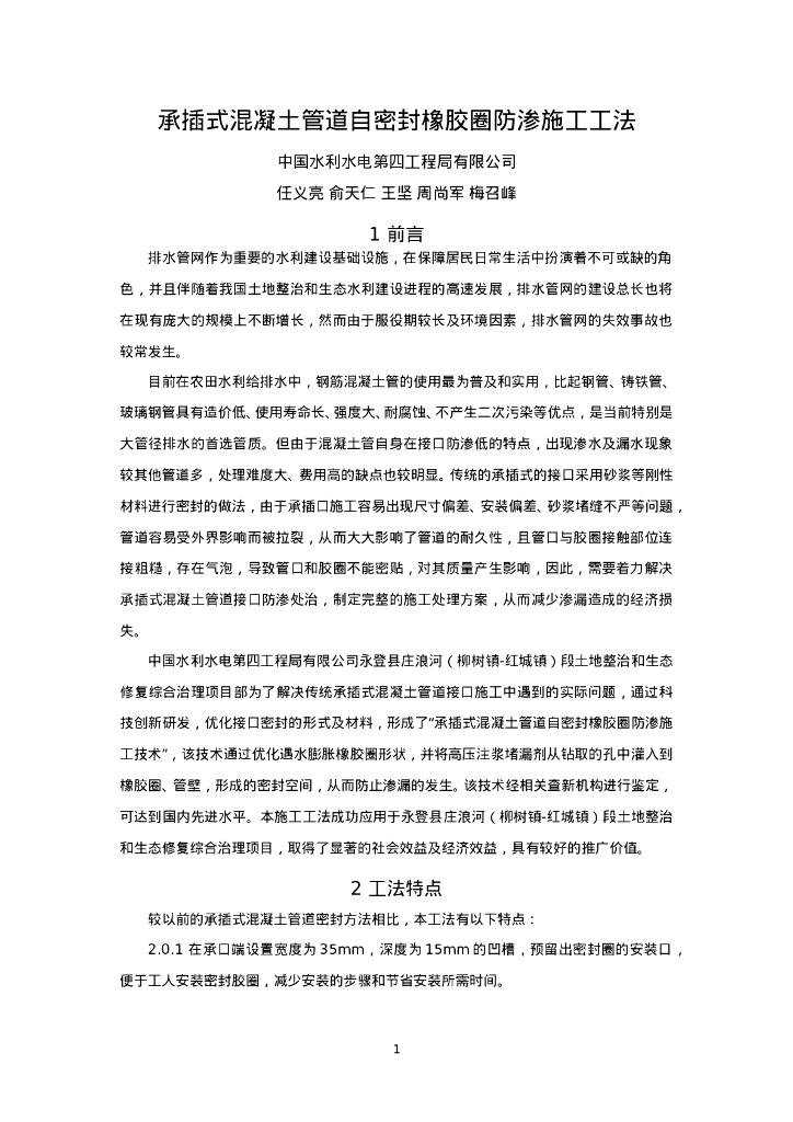 QHGF-2022138 承插式混凝土管道自密封橡胶圈防渗施工工法.doc