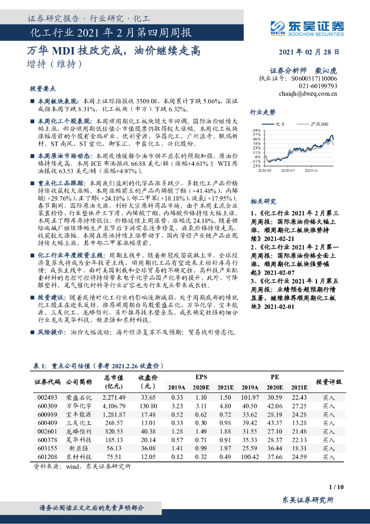 东吴证券:化工行业2021年2月第四周周报:万华MDI技改完成,油价继续走高.pdf