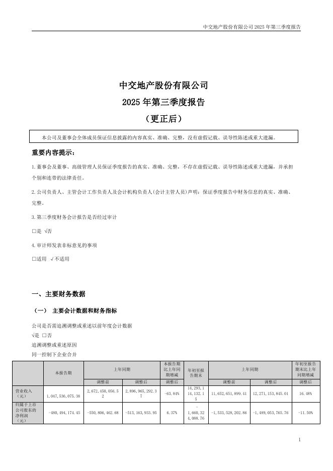 000736-*ST中地:2025年第三季度报告(更正后).pdf