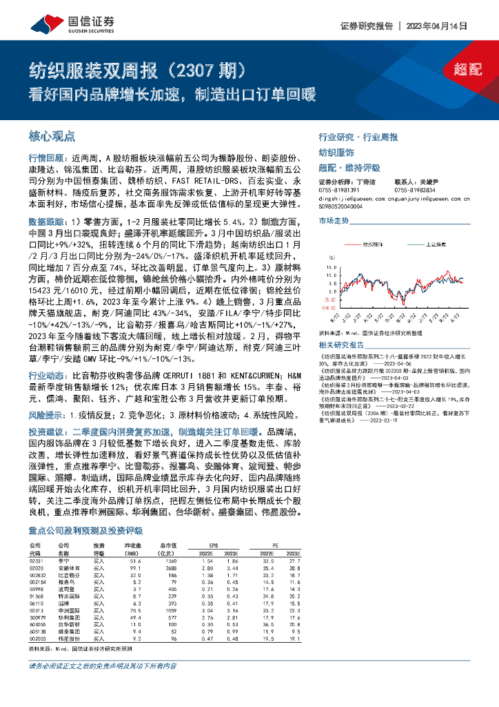 国信证券:纺织服装双周报(2307期):看好国内品牌增长加速,制造出口订单回暖.pdf