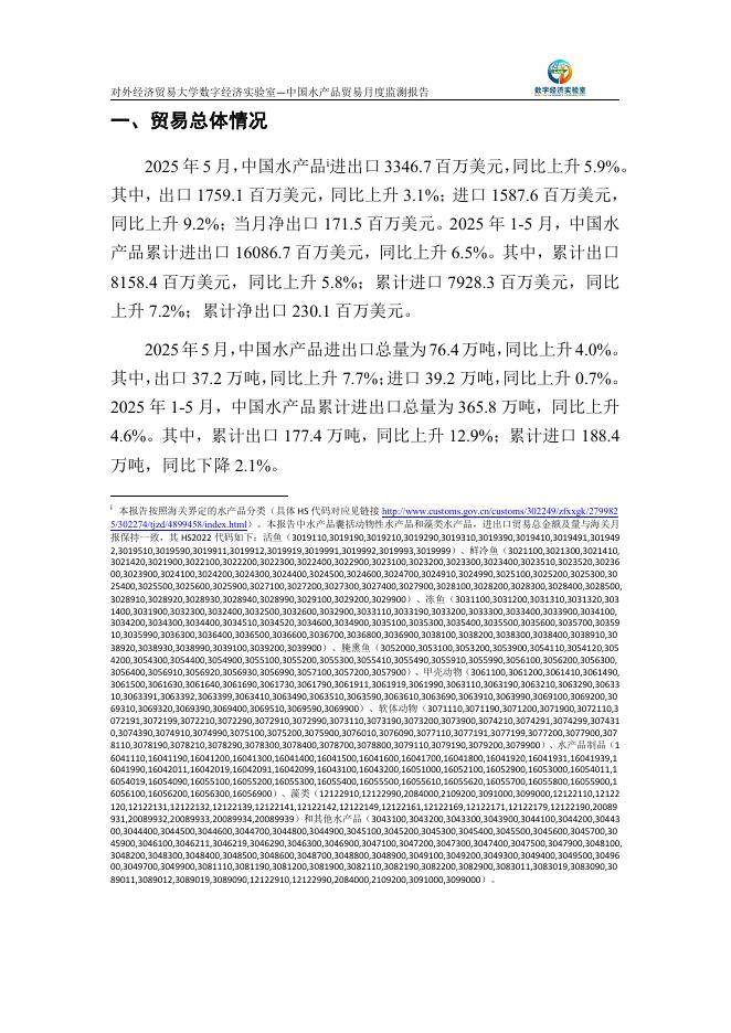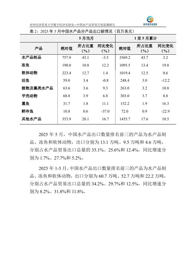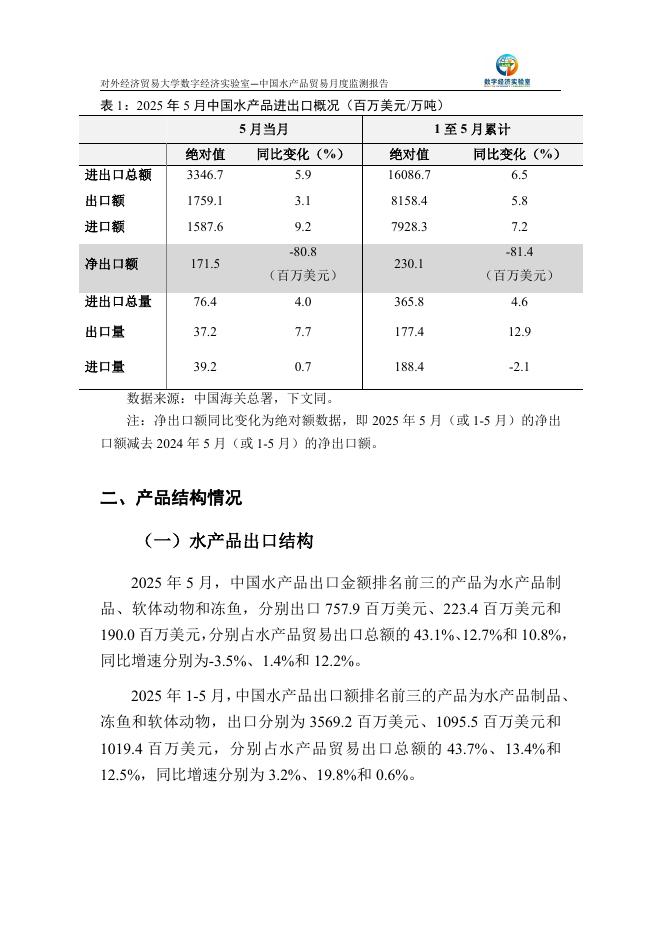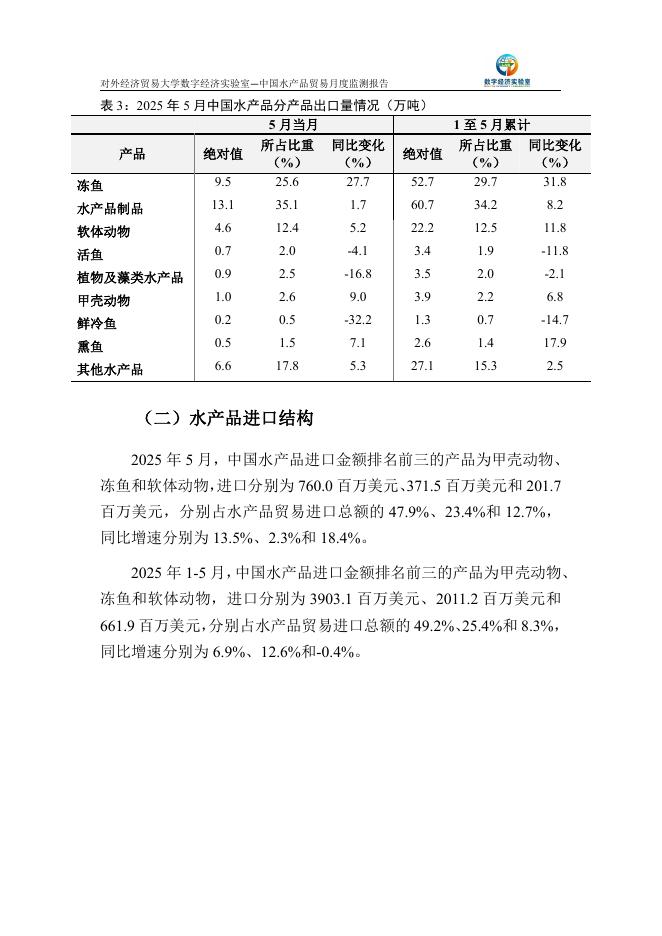 对外经济贸易大学:中国水产品贸易月度监测报告(2025年1-5月).pdf