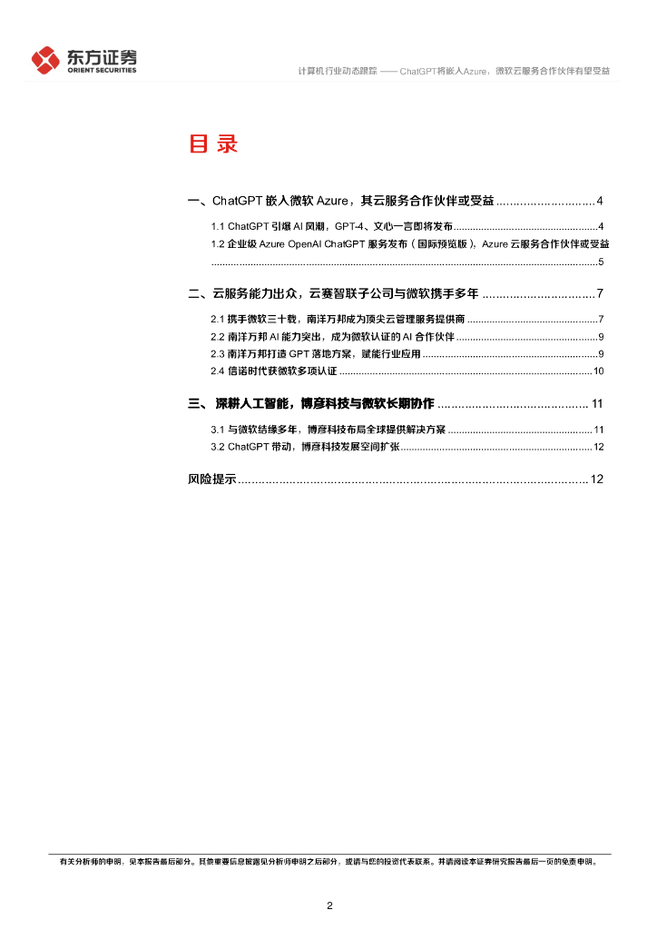 东方证券:计算机行业动态跟踪:ChatGPT将嵌入Azure,微软云服务合作伙伴有望受益.pdf