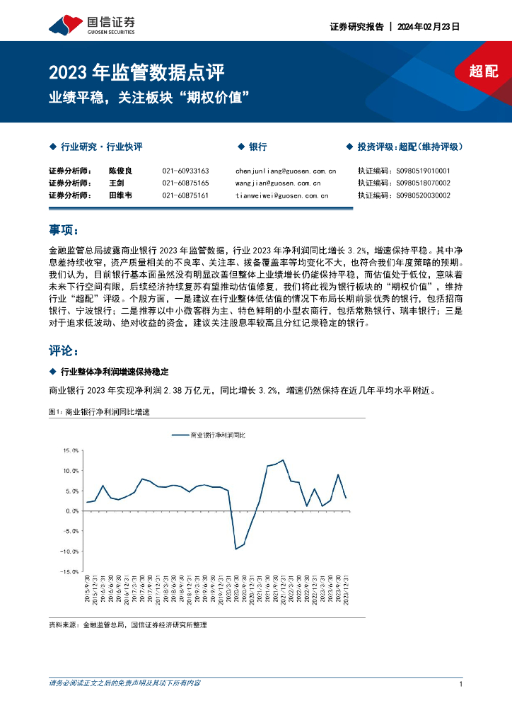 国信证券:银行:2023年监管数据点评-业绩平稳,关注板块“期权价值”.pdf