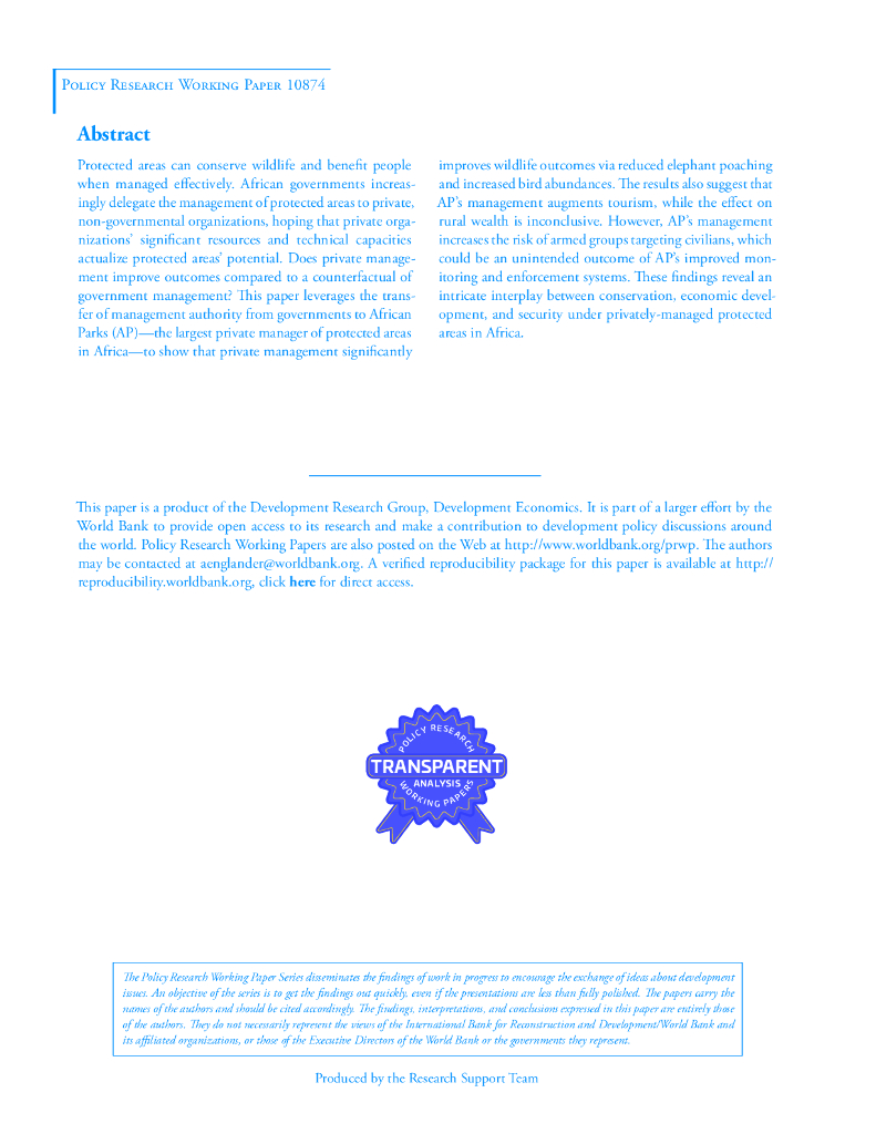 世界银行:非洲保护区的私人管理改善了野生动物和旅游业的成果,但在冲突地区存在安全问题(英文版).pdf