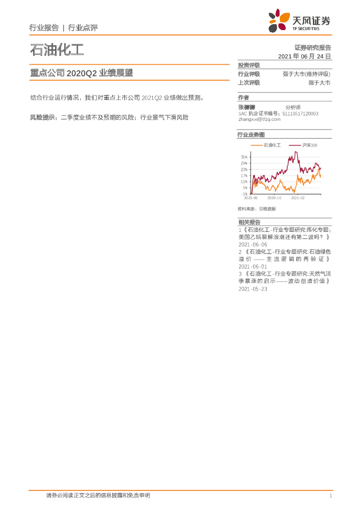 天风证券:石油化工行业:重点公司2020Q2业绩展望.pdf
