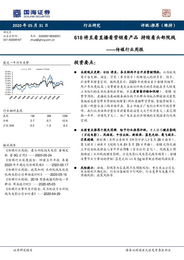 国海证券:传媒行业周报:618将至看直播看营销看产品 持续看头部院线.pdf