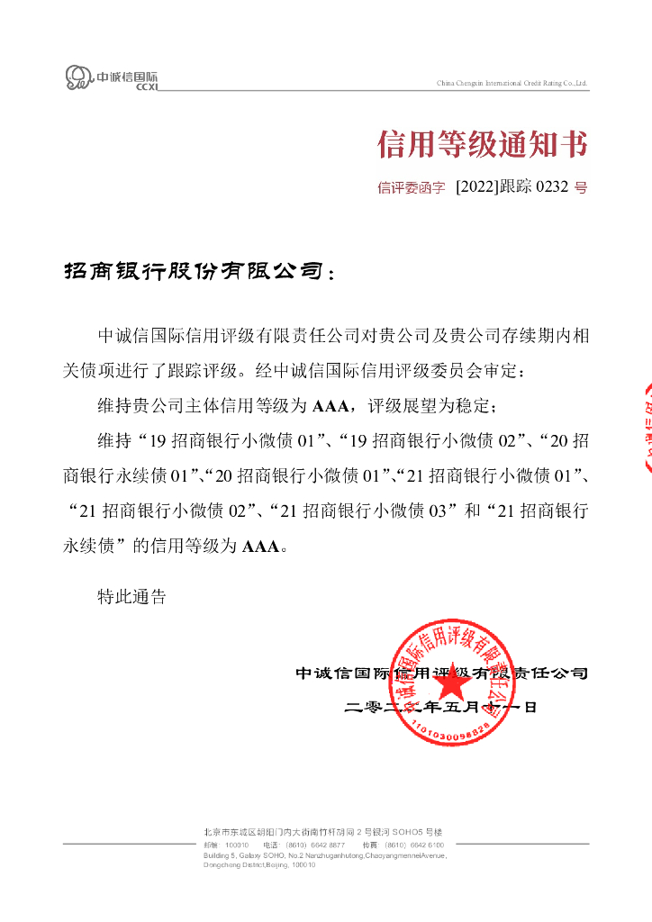 中诚信:2022年招商银行股份有限公司跟踪评级报告.pdf