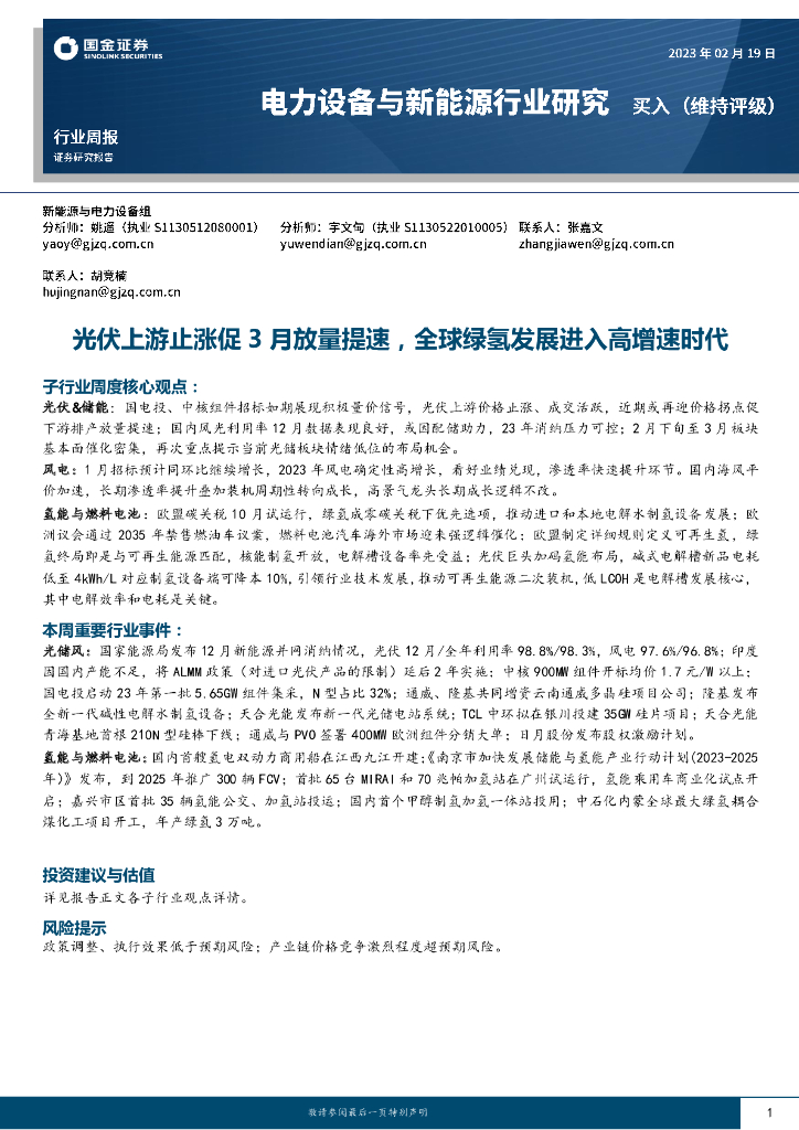 国金证券:电力设备与新能源行业研究:光伏上游止涨促3月放量提速,全球绿氢发展进入高增速时代.pdf