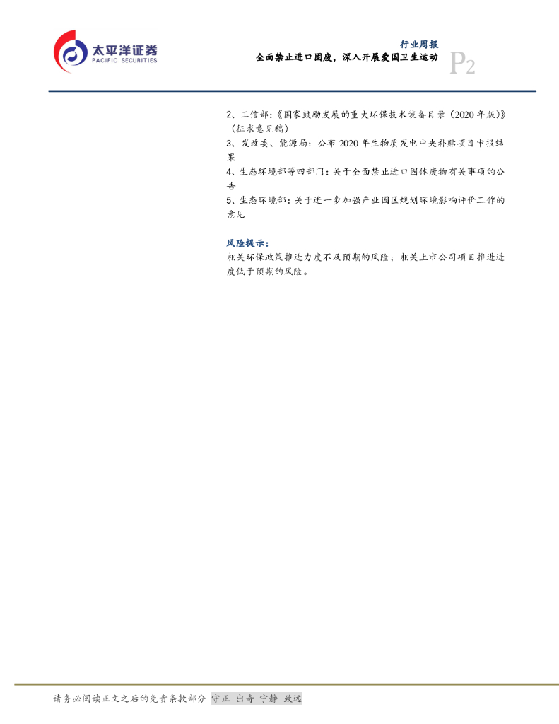 太平洋证券:公用事业行业周报:全面禁止进口固废,深入开展爱国卫生运动.pdf