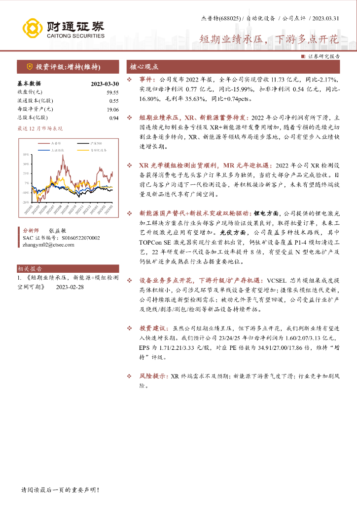 财通证券:杰普特(688025)-短期业绩承压,下游多点开花.pdf