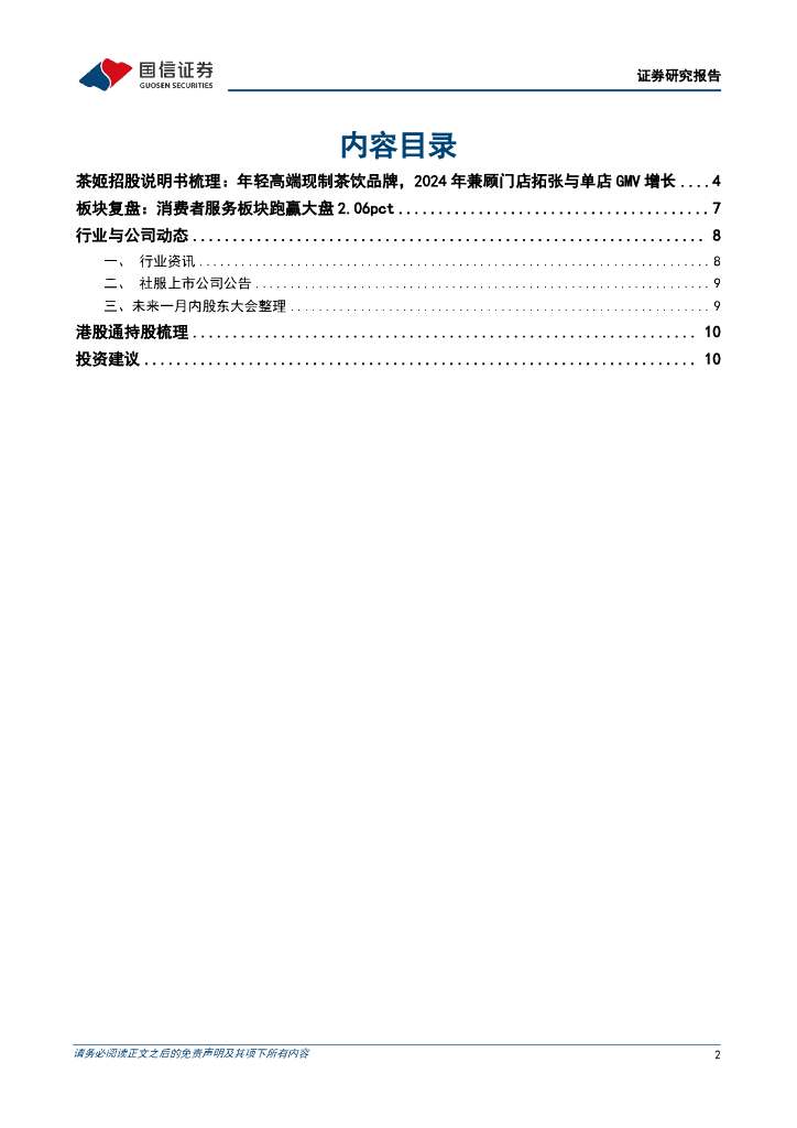 国信证券:社会服务行业双周报(第105期):茶姬招股说明书梳理,“大单品+强加盟”模式助力,2024年门店数及单店GMV双增长.pdf