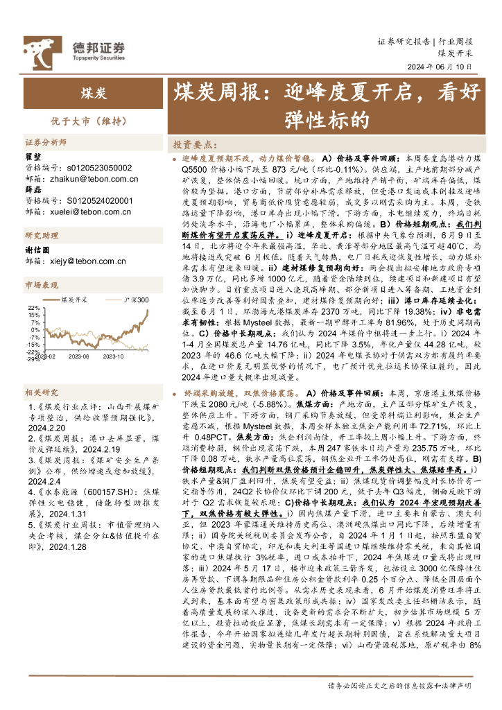 德邦证券:煤炭行业周报:迎峰度夏开启,看好弹性标的.pdf